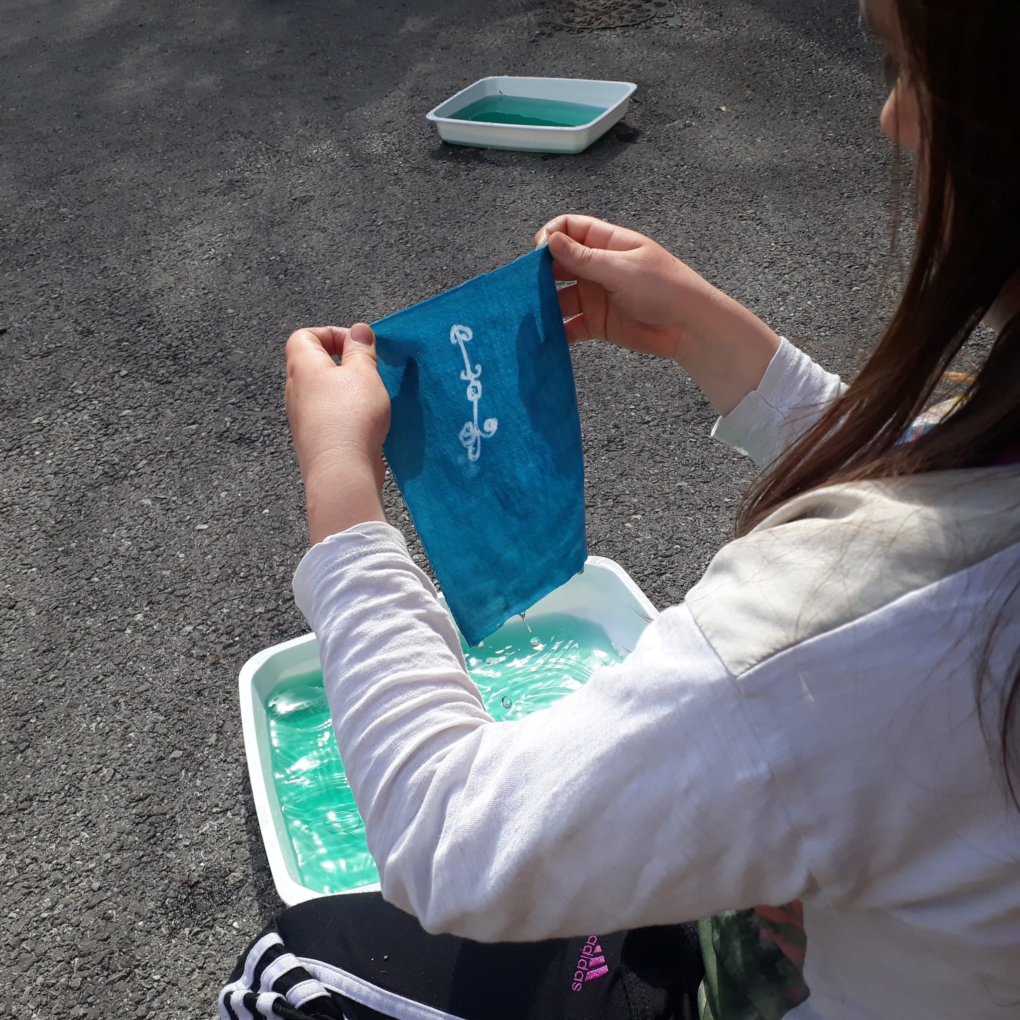 Ateliers avec des enfants en milieu scolaire sur plusieurs séances autour du procédé photographique appelé cyanotype datant de 1842, dont la particularité est cette magnifique couleur bleue prusse.